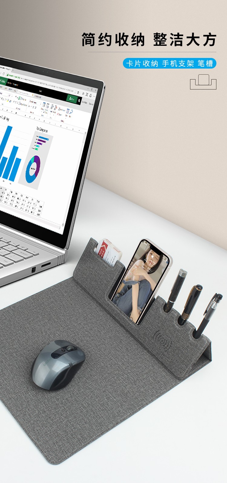 折疊支架款無線充電鼠標墊可定制 布紋超薄無線充鼠標墊可印LOGO