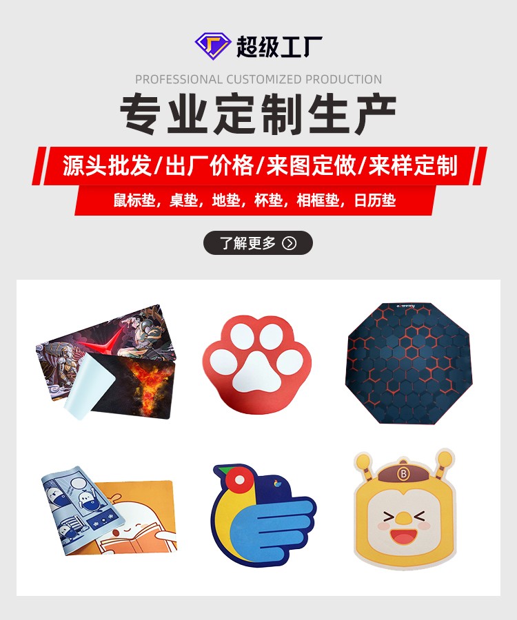 當然如果你想要一款更大的鼠標墊也可以選擇定制鼠標墊,通亞鼠標墊廠家可以根據(jù)用戶需求定制各式各樣的鼠標墊,從材質(zhì)-尺寸-款式-圖案均可以按要求定制。
