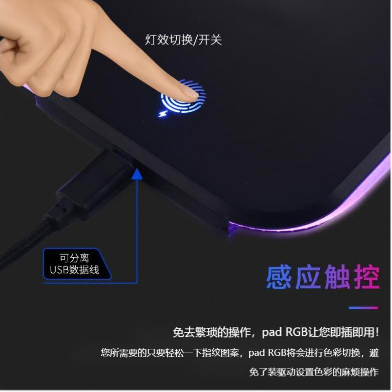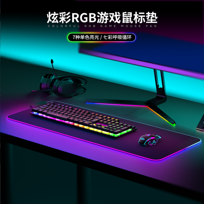 炫彩RGB游戲鼠標墊,織物面料編織,表面細膩、平整、操作穩(wěn)定,帶燈光切換按鍵,輕輕一按,燈光可自由切換,加厚橡膠底部,穩(wěn)固防滑